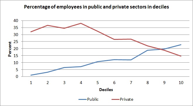 نمودار زیر نشان می دهد که افرادی که شاغل بخش دولتی هستند، در وضعیت درآمدی و هزینه ای بهتری قرار دارند.